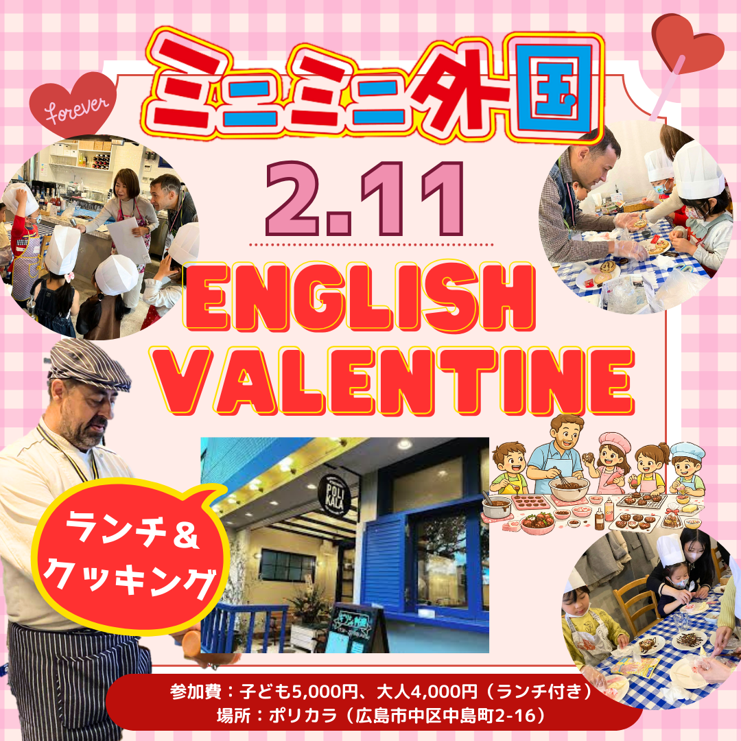 2/11【ランチ&クッキング】ミニミニ外国のEnglishバレンタイン💝