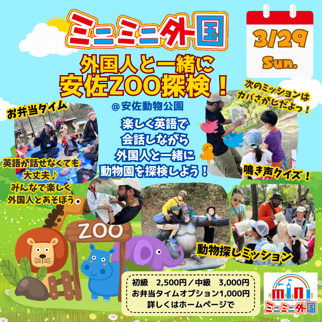 | イベント名 | 【3/29】外国人と一緒に安佐Zoo探検! |