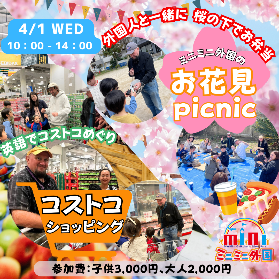| イベント名 | 【春休み特別企画】4/1 ミニミニ外国のコストコショッピング&お花見🌸 |